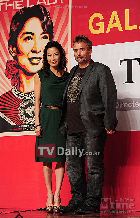 En marge du Festival international du cinéma de Busan, une conférence de presse a été organisée pour le film The Lady, en présence du réalisateur Luc Besson et de l'actrice chinoise Michelle Yeoh, qui incarne l'héroïne Aung San Suu Kyi. Vêtue d'une robe verte élégante, Michelle Yeoh a parlé de son opinion sur le film avec les médias.