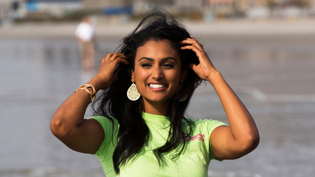 印度裔"美国小姐"海边拍写真 笑容灿烂