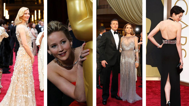 红毯上亮相的星星大咖们的表现究竟如何呢?查理兹·塞隆 (Charlize Theron)一席黑色迪奥 (Dior) 高定曳地礼服;凯特·布兰切特 (Cate Blanchett) 则身着阿玛尼高定 (Giorgio Armani Prive);安妮·海瑟薇 (Anne Hathaway)选择了一条Gucci的长裙,还有新人露皮塔·尼永奥 (Lupita Nyong'o) 一身天蓝色普拉达 (Prada) Look是十分惹眼。
