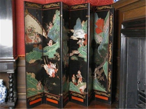 17世纪晚期,英国萨里汉姆庄园的阴刻漆器屏风。