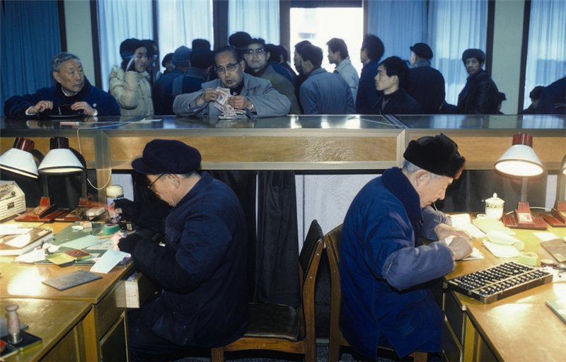 1986, des gens achètent des actions dans un stade à Shanghai.