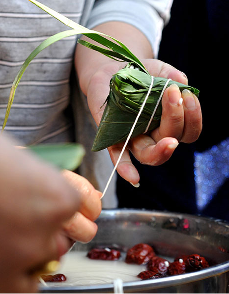 Une habitante de Shizuishan, dans la région autonome Hui du Ningxia (Nord-Ouest de la Chine), confectionne des zongzi, une spécialité traditionnelle chinoise à base de riz. [Peng Zhaozhi / Xinhua]