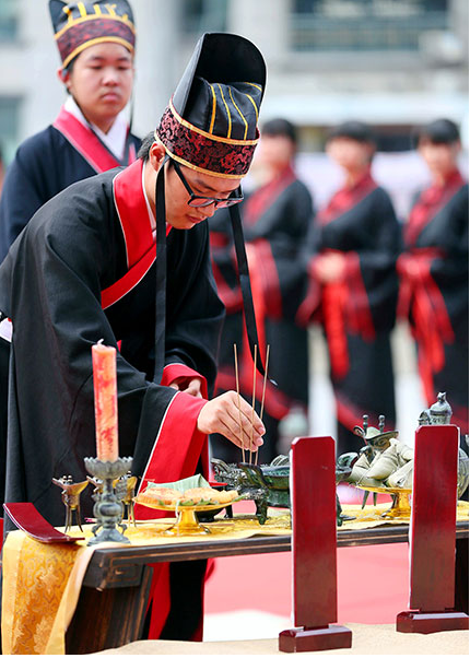 Une cérémonie traditionnelle en l'honneur de Qu Yuan, organisée à Nantong, dans la province du Jiangsu (Est de la Chine). [Xu Peiqin / Pour le China Daily]