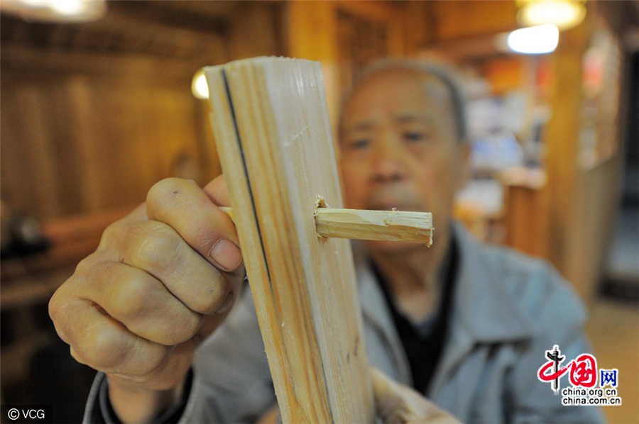French.china.org.cn | Mis à jour le 30. 11. 2016 | Mots clés : charpentier ,clou,Guiyang ,maison en bois