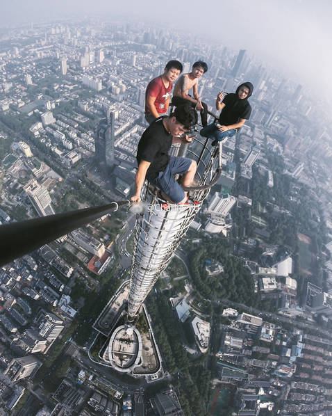 - Ces quatre jeunes hommes ont fait le buzz sur le web avec leurs vidéos et selfies extrêmes. Ils ont escaladé le toit du gratte-ciel Zifeng de Nanjing, chef-lieu de la province du Jiangsu (est), pour y prendre des selfies et des vidéos extrêmement dangereuses.