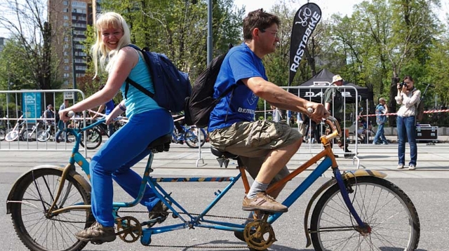 Des amateurs participent à la fête « Velobulvar » sur la rue Samotechnaïa, de Moscou le 11 mai 2013.
