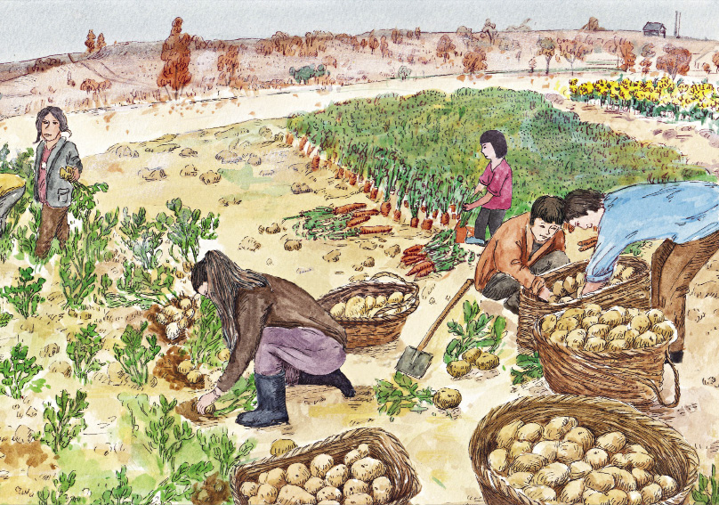 Dans l’étang, les feuilles de lotus laissent tomber leurs têtes et sèchent mais les racines attendent d’être récoltées pour finir sur la table des Chinois.