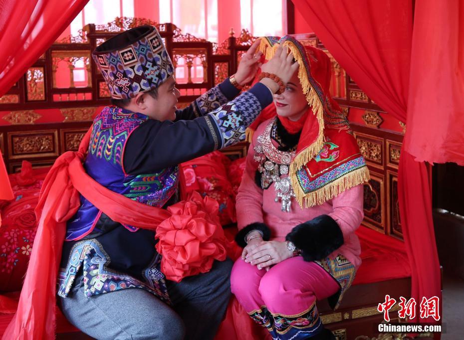 - Le 11 janvier, Nathalie, professeur de piano ukrainienne, et Jiang Zongkun, d’origine chinoise, se sont dit oui lors d'une cérémonie de mariage traditionnelle de l’ethnie Tujia organisée dans la vieille rue Xibu à Zhangjiajie, dans la province du Hunan (centre de la Chine).
