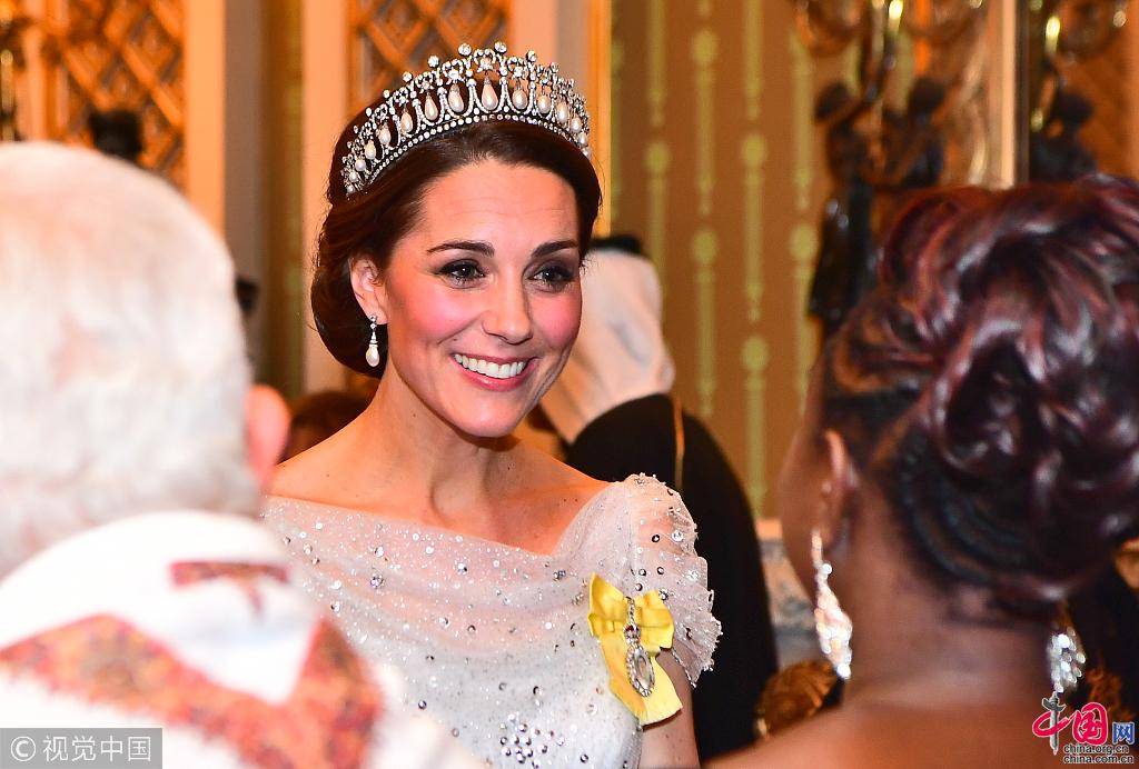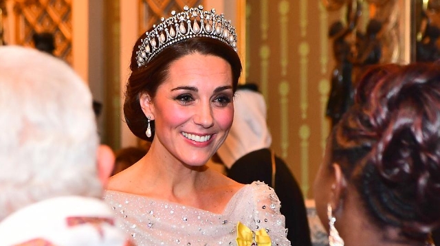 La reine Elizabeth II, le prince William et son épouse Kate Middleton, tous sur leurs trente-et-un, ont assisté le 4 décembre à la soirée diplomatique annuelle au palais de Buckingham à Londres. La duchesse de Cambridge a porté pour l’occasion la couronne ayant appartenu à la princesse Diana.