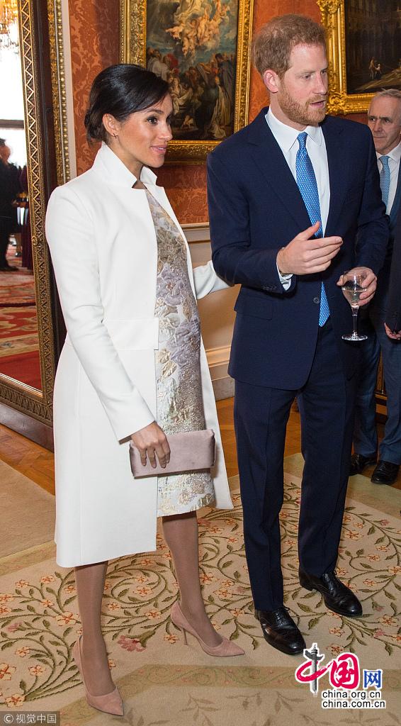 Une réception s’est tenue le 5 mars au palais Buckingham, à Londres, célébrant les 50 ans de l’investiture du prince de Galles. Kate Middleton et le prince William, mais aussi Meghan Markle et le prince Harry, y étaient tous présents. La duchesse de Sussex Meghan Markle a choisi un manteau signé Amanda Wakeley et une robe mi-longue. La duchesse de Cambridge Kate Middleton a quant à elle porté une robe verte pale. Il s’agit d’une rare apparition en duo pour les deux duchesses depuis Noël dernier.