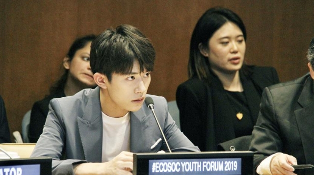 Jackson Yee (Yi Yangqianxi), membre du groupe chinois TFBoys et ambassadeur chinois de l’Organisation mondiale de la santé, a assisté le 8 avril à un forum au siège de l’ONU à New York et a prononcé un discours sur la santé des jeunes.