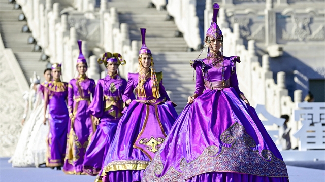 Un défilé de mode en costumes traditionnels chinois s'est tenu le 11 octobre au parc de l'industrie culturelle à Erdos, dans la région autonome de Mongolie intérieure (nord), présentant la mode mongole ainsi que la culture des dynasties des Han et des Tang.