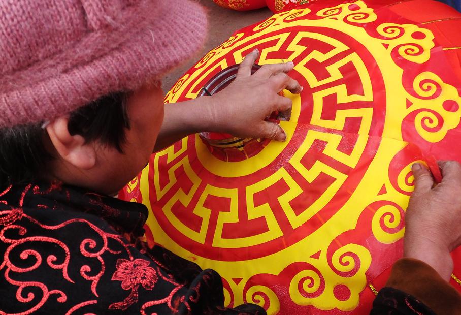 À l'approche de la fête du Printemps, les travailleurs du village de Yangzhao du comté de Jishan, dans la province du Shanxi (nord de la Chine), s'affairent à fabriquer des lanternes rouges.
