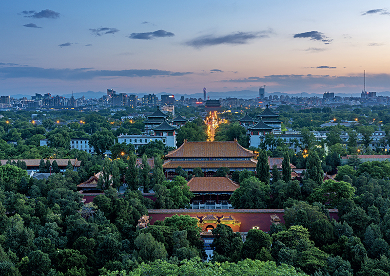 L’Axe central de Beijing désigne une ligne traversant la capitale en son centre, qui part de Yongdingmen (porte d’entrée des remparts qui entouraient la vieille ville) et s’étend vers le nord en passant par Zhengyangmen, la place Tian’anmen, la Cité interdite, le parc Jingshan, jusqu’aux Tours de la cloche et du tambour. Il englobe également le Temple des ancêtres impériaux et l’Autel de la terre et du grain situés devant la Cité interdite, respectivement à gauche et à droite selon la disposition traditionnelle, ainsi que le Temple du ciel et l’Autel de l’agriculture installés aux deux extrémités sud de l’axe. S’étirant sur une longueur de 7,8 km, cet Axe central de Beijing sept fois centenaire équivaut à un concentré de procédés d’urbanisme et d’art architectural classiques, révélateurs de l’excellence qu’avait déjà atteinte la Chine antique dans ces domaines. Parallèlement, il s’agit d’un ensemble urbain qui transmet par essence les anciens usages confucéens en vigueur en Chine.