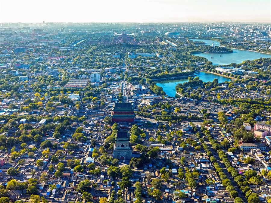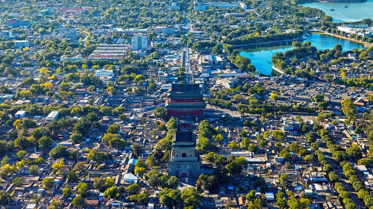 Depuis la Tour de la Cloche située à l'extrémité nord de l'Axe central de Beijing, vous pouvez admirer cet axe s'étendant du nord au sud.