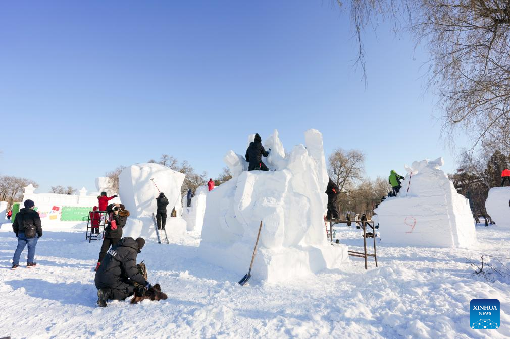 Les sculptures commencent à prendre forme à la compétition internationale de sculptures sur neige de Harbin