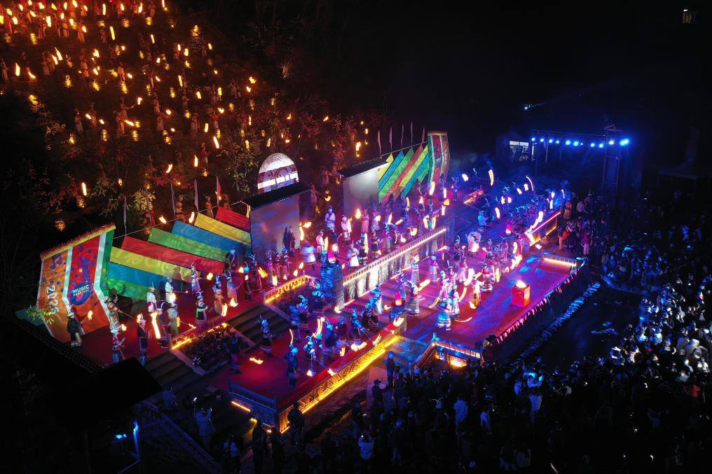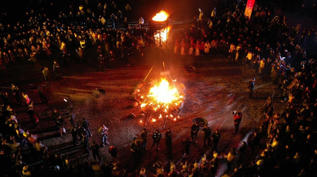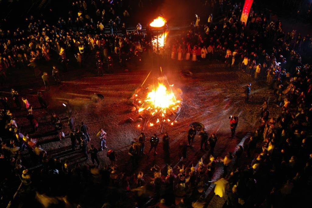 Le 3 mars, l'ambiance était très animée au village tibétain de Tielou, situé au xian de Wenxian, à Longnan, dans la province du Gansu (nord-ouest). Des habitants locaux ont illuminé des torches pour célébrer la fête des Lanternes et ont pratiqué des coutumes folkloriques uniques, telles que la danse « Chigezhou » (une danse rituelle traditionnelle) et la danse du cercle de feu.