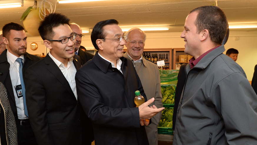 Le Premier ministre chinois Li Keqiang a visité vendredi l'exploitation de la famille Lienhard à Embrach, près de Zurich (nord de la Suisse), lors de son passage en terres helvétiques.