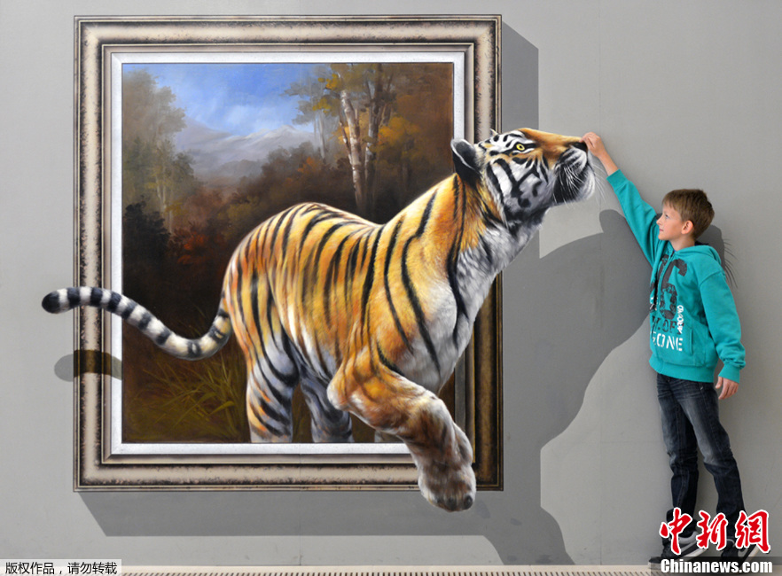 当地时间2013年6月27日,德国奥古斯都堡,举行“你就是艺术”展览,其中特殊的3D作品吸引观众互动。