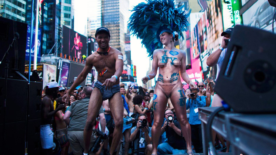 De nombreux habitants de New York se sont réunis le 5 août à Times Square pour tenter de battre le record du plus grand rassemblement en sous-vêtements. L'ancien record Guinness était de 2270 personnes.