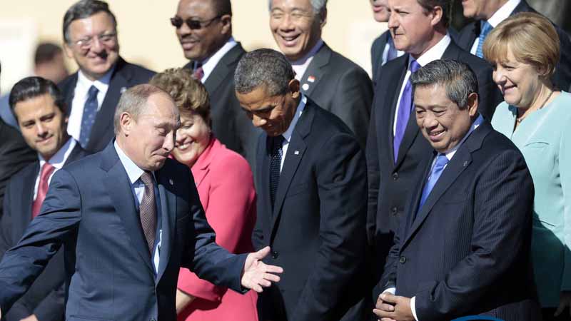 Le 6 septembre 2013, les chefs d'Etats du G20 ont pris la pose à Saint-Pétersbourg pour les traditionnelles photos de groupe. Le président russe Vladimir Poutine a laissé échapper une grimace en passant devant le président américain Barack Obama, qui baisse le regard pour ignorer son homologue russe. Une scène un peu enfantine qui fait sourire le reste de la « classe ».