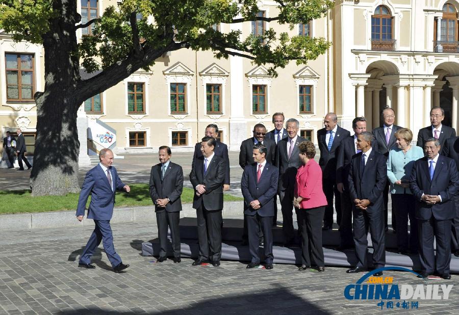 - Le 6 septembre 2013, les chefs d'Etats du G20 ont pris la pose à Saint-Pétersbourg pour les traditionnelles photos de groupe.