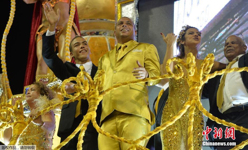 罗纳尔多穿土豪金携子助阵巴西狂欢节 为世界杯预热