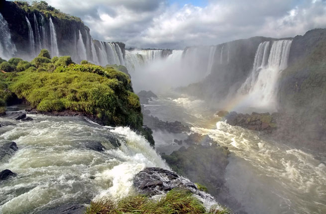 Situées à la frontière du Brésil et de l'Argentine, les chutes d'Iguazu font environ 149 mètres de large et 914 mètres de long, et comprennent la plus grande chute d'eau du monde, surnommée « Gorge du Diable ».