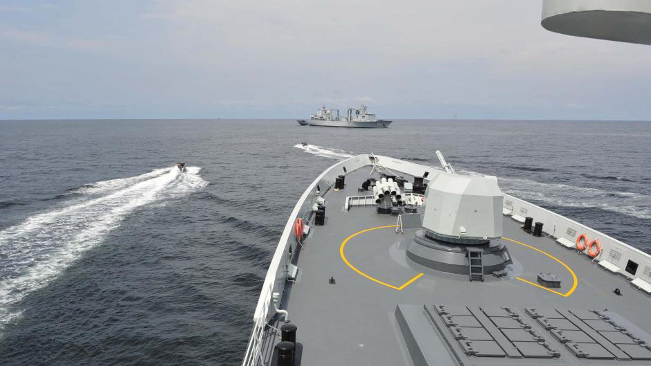 当地时间6月2日,中国海军第十六批护航编队与喀麦隆海军在几内亚湾进行了反海盗联合演练。这是中喀海军进行的首次反海盗联合演练,旨在提高维护海上安全、应对海上威胁的能力。