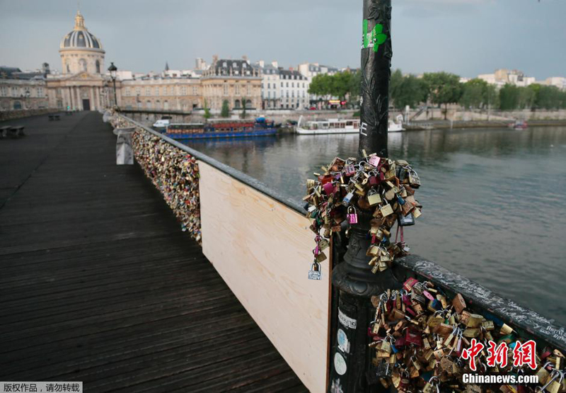 - Sur le pont des Arts à Paris, une grille de 2,4 mètres qui n'était plus en mesure de supporter les cadenas d'amour s'est effondrée le 8 juin vers 17 h 50.