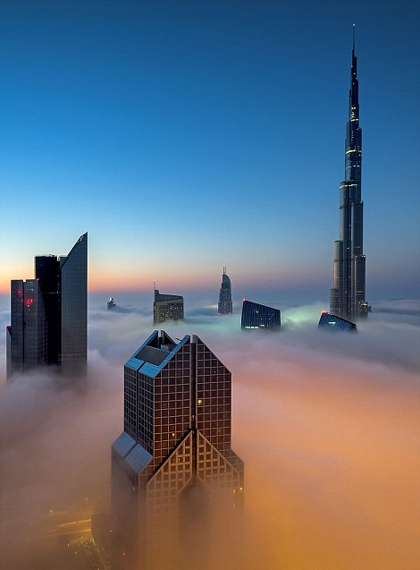 - Un photographe américain a publié récemment une série d'images des gratte-ciel de Dubaï plongés dans les nuages.