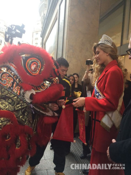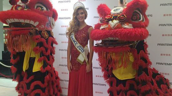 Jeudi, une activité de célébration du Nouvel An chinois a eu lieu au magasin Printemps du boulevard Haussmann, à laquelle était invitée la nouvelle Miss France, Camille Cerf. Aux côtés du dirigeant de l'enseigne, Paolo De Cesare, elle a fêté l'entrée dans l'année de la Chèvre. De nombreux admirateurs français et asiatiques se sont rendus sur place pour rencontrer la nouvelle icône de la France.