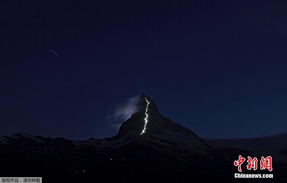 - Le mont Cervin éclairé en hommage à ses conquérants