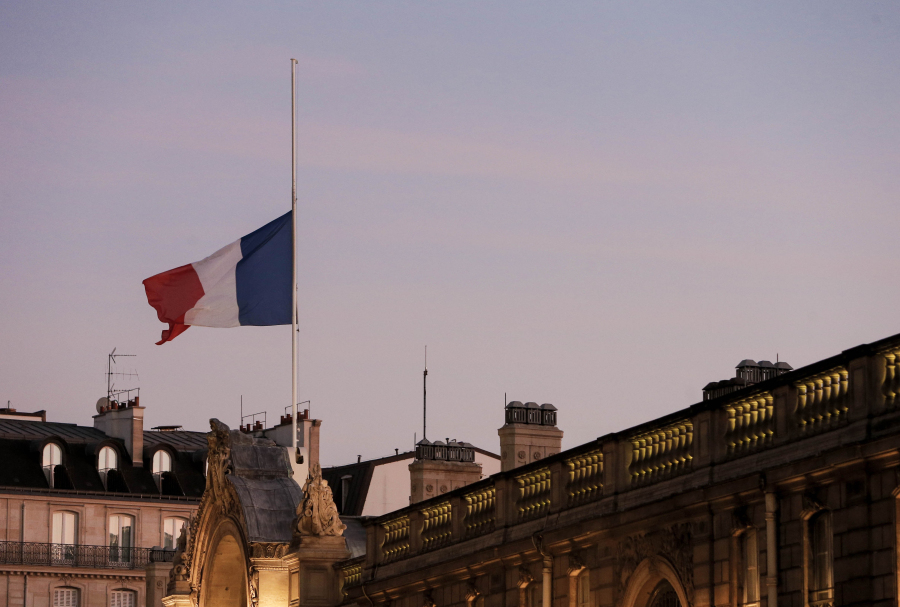 French.china.org.cn | Mis à jour le 16. 11. 2015 | Mots clés : drapeau français,en berne,Elysée,attaques à Paris