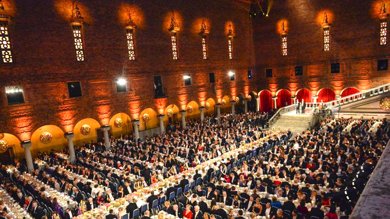 Hier, la cérémonie de remise des prix Nobel a eu lieu au Concert Hall de Stockholm, suivie d'un somptueux banquet organisé à la mairie de la ville en présence de quelque 1300 invités. Les prix Nobel sont décernés chaque année depuis 1901. L'annonce des lauréats a lieu en octobre et la cérémonie de remise des prix du 10 décembre est le point d'orgue de la semaine des Nobel, durant laquelle les lauréats participent à une série de séminaires et de manifestations, à Stockholm.