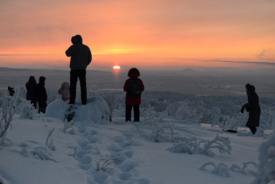 - Malgré le froid extrême, les habitants de Mourmansk se rassemblent chaque année en janvier sur le point le plus élevé de la ville pour rencontrer les premiers rayons du soleil.