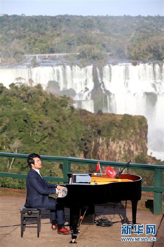 - Le pianiste chinois Lang Lang joue du piano devant les chutes d'Iguazú au Brésil