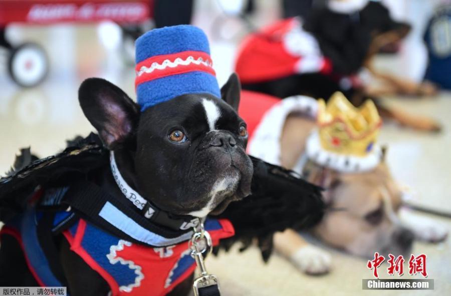 Des chiens portent des costumes d'Halloween, dans le cadre d'un programme visant à soulager le stress lié aux voyages aériens, à l'aéroport de Los Angeles, en Californie, le 28 octobre 2016. (Photo / Agences)