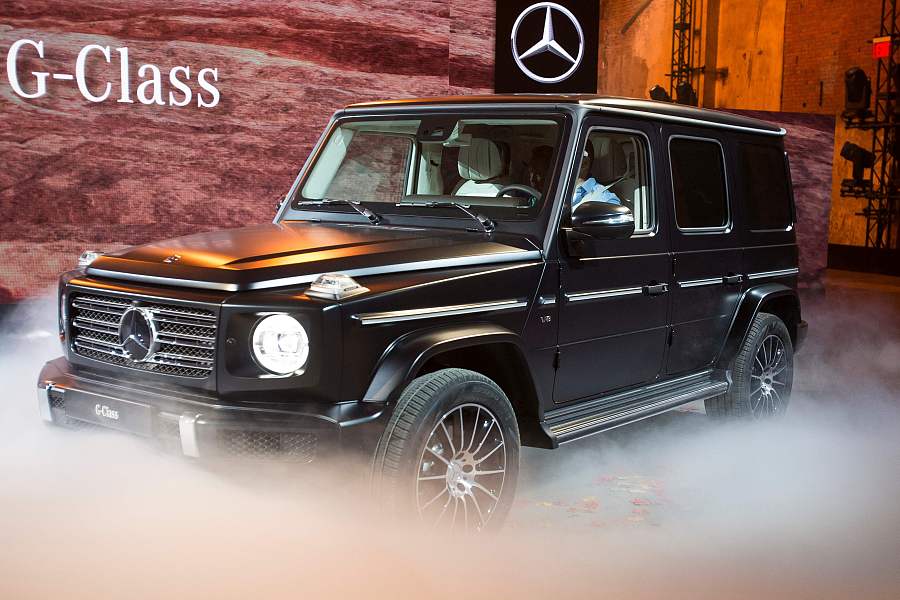 La nouvelle Mercedes G-Wagon, dévoilée lors d'un événement de presse à la veille de l'avant-première de l'édition 2018 du Salon international de l'auto d'Amérique du Nord (North American International Auto Show, NAIAS) 2018, le 14 janvier 2018 à Detroit.