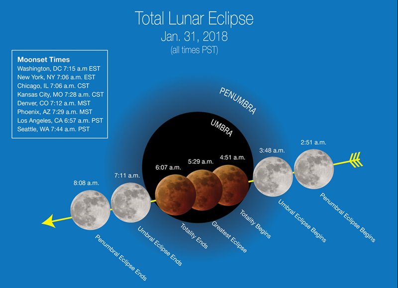 Un spectacle qu'on ne voit qu'« une fois dans une vie » aura lieu le 31 janvier, et il sera visible dans la partie ouest de l'Amérique du Nord, en Alaska et dans les îles hawaïennes.