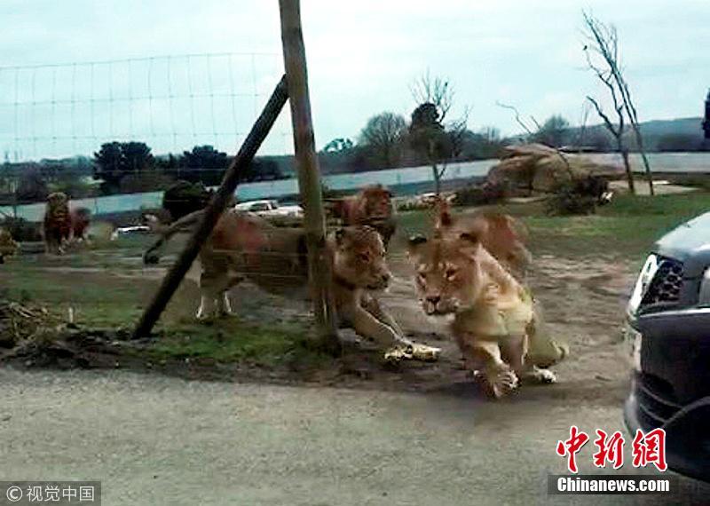 Des lions du West Midland Safari Park, en Angleterre, se sont précipités sur une voiture de visiteurs sans raisons évidentes. Les 4 passagers, dont 2 enfants, n'ont heureusement pas été blessés dans cette attaque soudaine.