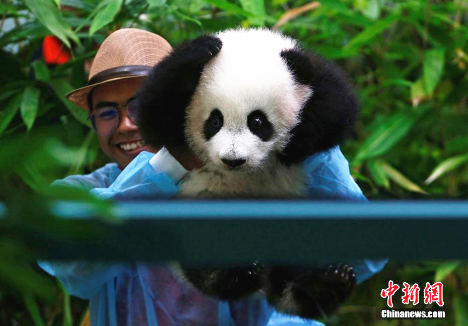 La petite panda femelle, née le 14 janvier 2018, a fait sa première apparition publique samedi le 26 mai au zoo national de Kuala Lumpur.