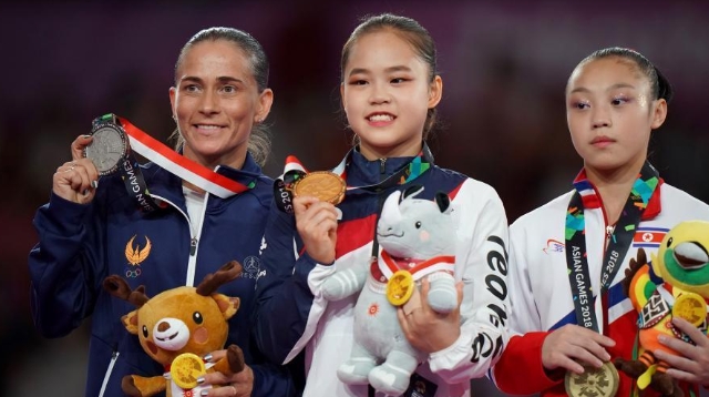 - A 43 ans, la gymnaste ouzbèke Oksana Chusovitina remporte une médaille d’argent à Jakarta