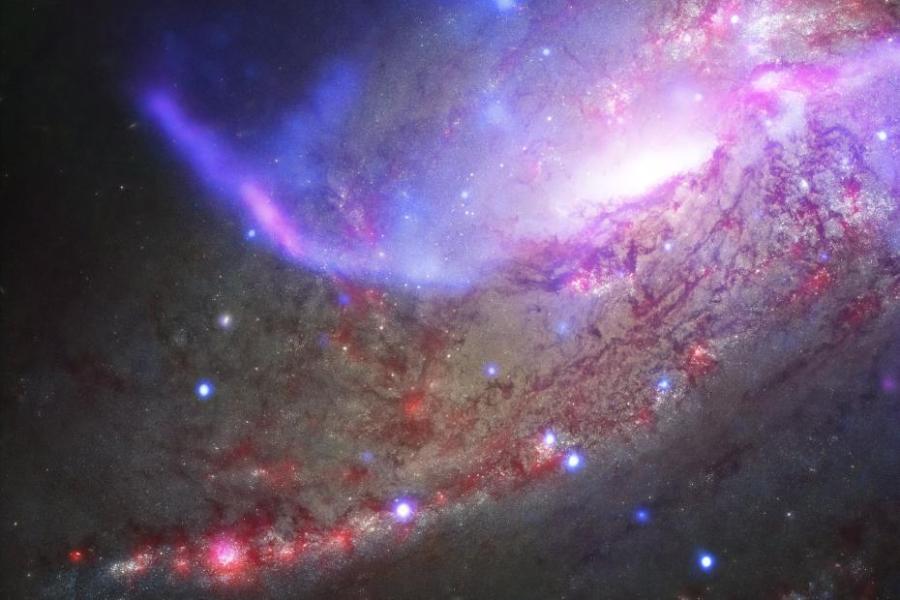 - Une galaxie située à environ 23 millions d'années-lumière de la Terre est actuellement le théâtre d'un impressionnant feu d'artifice. Ici, bien entendu, pas de papier, de poudre ni de feu : ce spectacle lumineux galactique implique un trou noir géant, des ondes de choc et de vastes réservoirs de gaz.