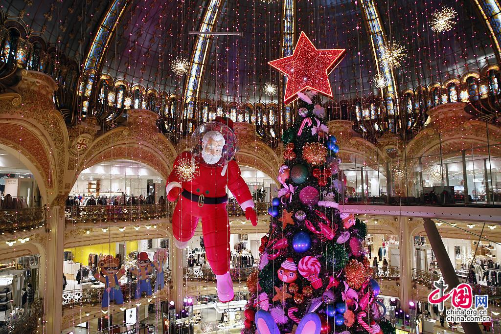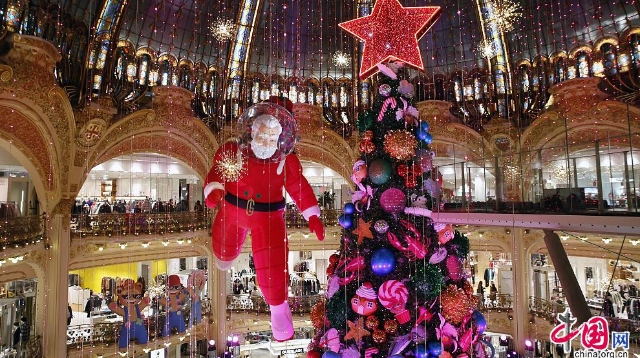 Voici une série de photo prises le 23 novembre à Paris, en France, montrant des décorations récemment installées dans les rues et dans les vitrines de grands magasins pour célébrer Noël et le Nouvel An. (Photo/VCG)