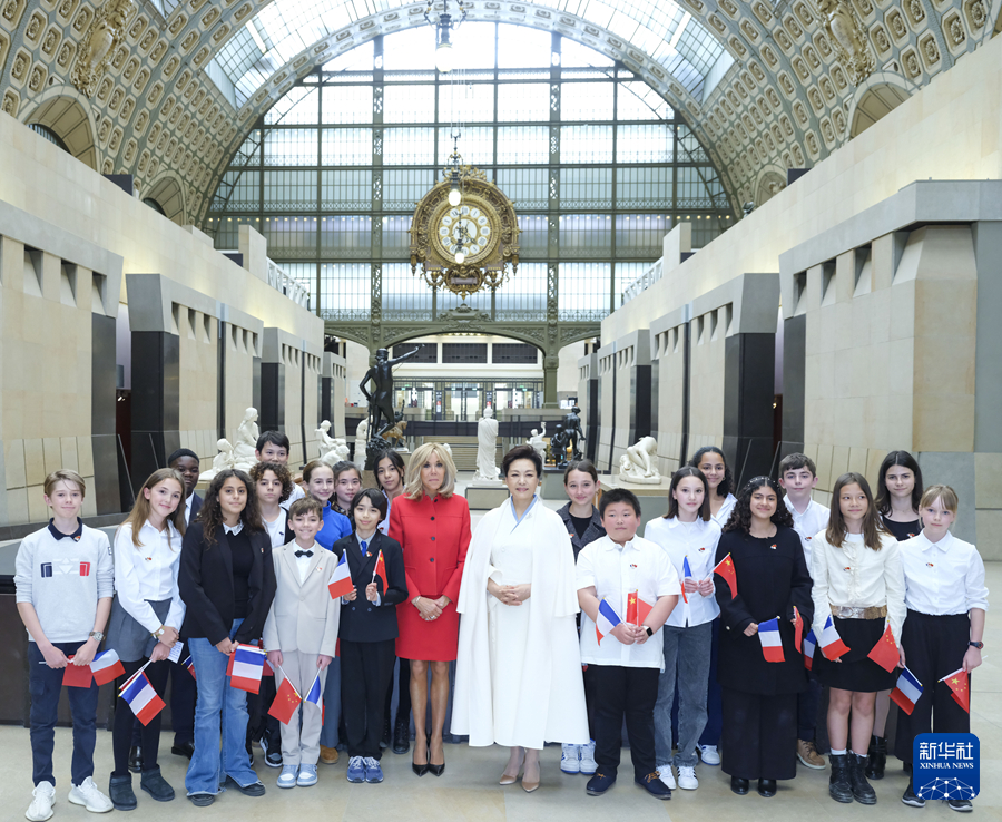 Peng Liyuan, l'épouse du président chinois Xi Jinping, a visité sur invitation le Musée d'Orsay avec Brigitte Macron, l'épouse du président français Emmanuel Macron, lundi après-midi à Paris.