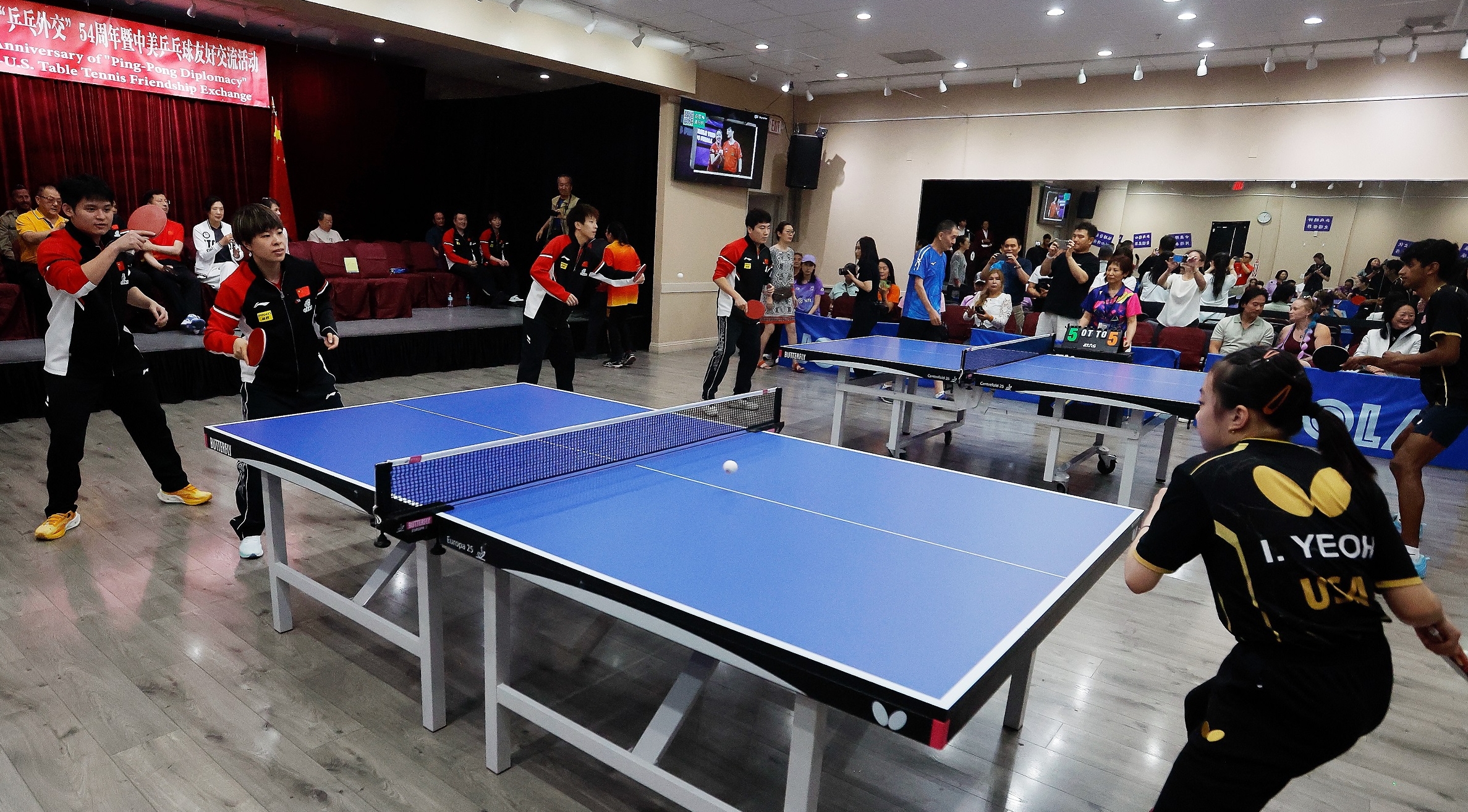 Plusieurs activités, dont des matchs amicaux, ont été organisées le 13 juillet à Las Vegas, aux Etats-Unis, pour célébrer le 54e anniversaire de la diplomatie du « ping-pong ». Quelques joueurs chinois participant actuellement au Grand Chelem américain de la Ligue mondiale de tennis de table (WTT) ont échangé à cette occasion avec des joueurs de l'équipe américaine ainsi que des amateurs de tennis de table.