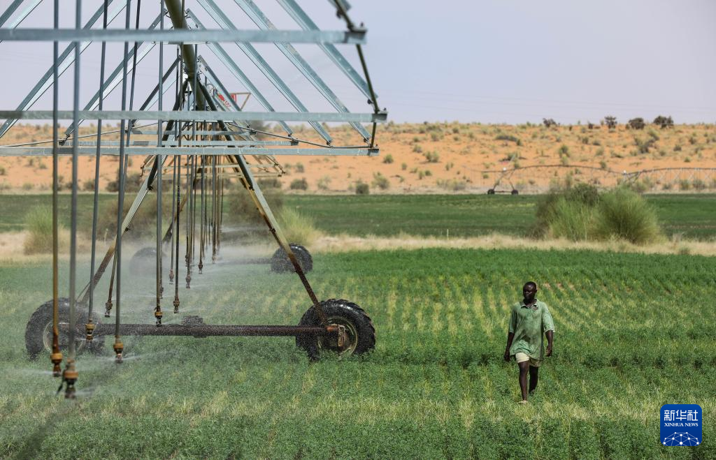 Photo prise le 18 juillet, montrant un éleveur en train de vérifier le fonctionnement d’un système d’arrosage dans un champ de luzerne situé au Centre des technologies d’élevage de Mauritanie. En Mauritanie, où plus de 80% du territoire est désertique, la survie des plantes est difficile. En 2017, le projet du Centre des technologies d'élevage de Mauritanie, soutenu par la Chine, a été officiellement lancé dans le village d'Idini. Depuis, cette coopération a contribué au développement de l'élevage dans la région en améliorant la culture des plantes fourragères et en optimisant l’efficacité de la reproduction dans les zones pastorales.