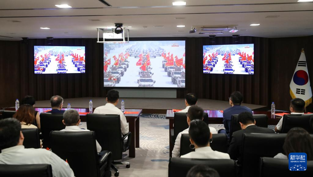 Des ressortissants chinois vivant à l'étranger suivent en direct la cérémonie commémorant le 80e anniversaire de la victoire dans la Guerre de résistance du peuple chinois contre l'agression japonaise et la Guerre mondiale antifasciste, à Séoul, en Corée du Sud, le 3 septembre. Dans de nombreux pays et régions du monde, des communautés chinoises ont suivi en direct le 3 septembre la cérémonie commémorative, rendant hommage aux martyrs et permettant à la jeune génération de résidents chinois à l'étranger de mieux connaître cette page de l'histoire. (Yao Qilin / Xinhua)