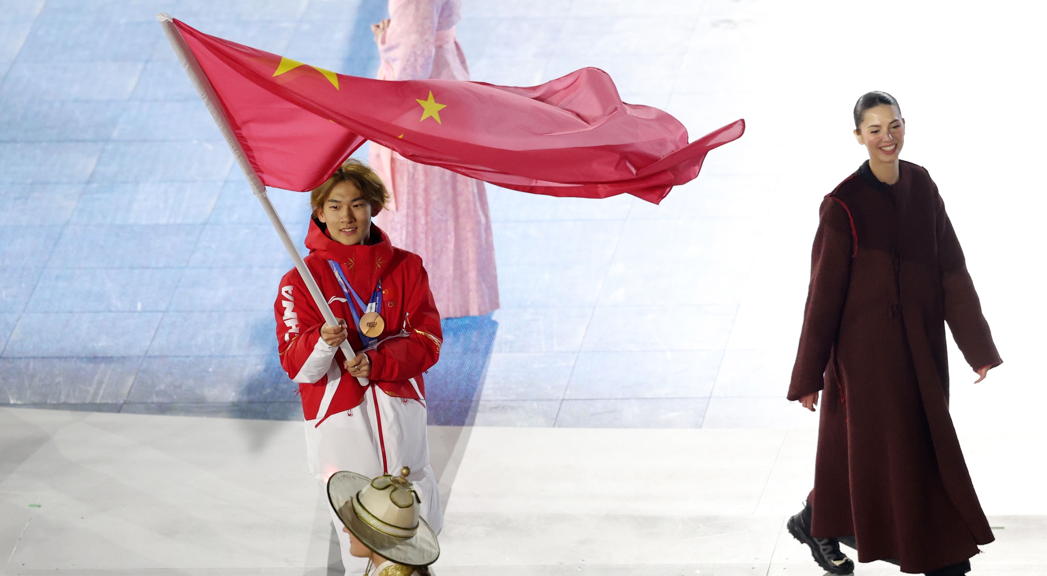 Su Yiming, porte-drapeau de l'équipe chinoise lors de la cérémonie de clôture de dimanche, a lancé une mini-série de médailles d'or en remportant mercredi l'épreuve de slopestyle en snowboard masculin. Le patineur de vitesse Ning Zhongyan a ensuite détrôné le favori, l'Américain Jordan Stolz, pour remporter le 1 500 m masculin avec un nouveau record olympique de 1 minute 41 secondes 98 centièmes.